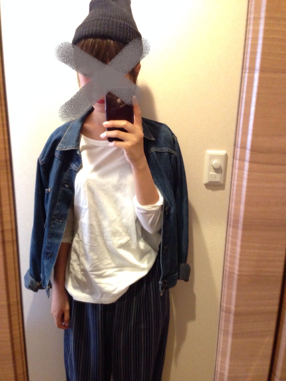 Gジャン:levis 古着 カットソー:GAP パジャマパンツ:古着 ニット帽:サンタモニカ かな〜りお久しぶりの更新です 就職も決まり、卒論に追われる毎日です そろそろ古着ファッション卒業かな〜 二日酔いですが ちょっとそこまでお出かけ。