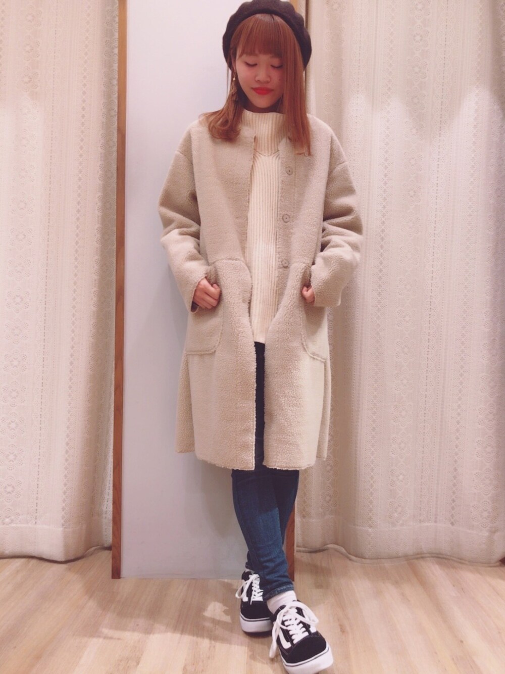 harukaのムートンコート「リバーシブルフェイクムートンノーカラーコート」を使ったコーディネート