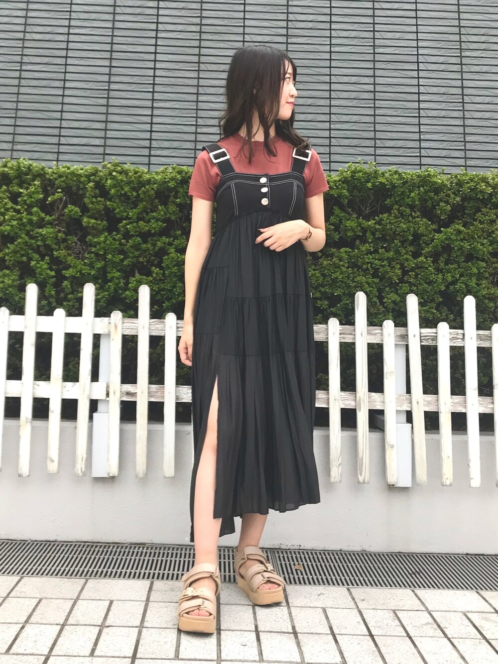 は るのワンピース「プリーツティアードベアワンピース」を使ったコーディネート
