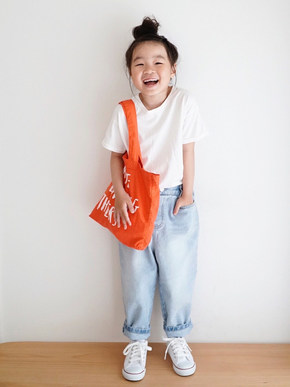シンプルコーデに かんでんちくんのshop pandaさんのロゴトートを ポイントにしました❤️ はじめてお迎えした pandaさんアイテム🐼 可愛いのいっぱいで 他のアイテムも購入しました🙌💕 迅速な対応 ありがとうございました🙇♀️✨ はーちゃん◡̈⃝︎⋆︎* 115㎝/19.5㎏ tops▷L denim▷XL