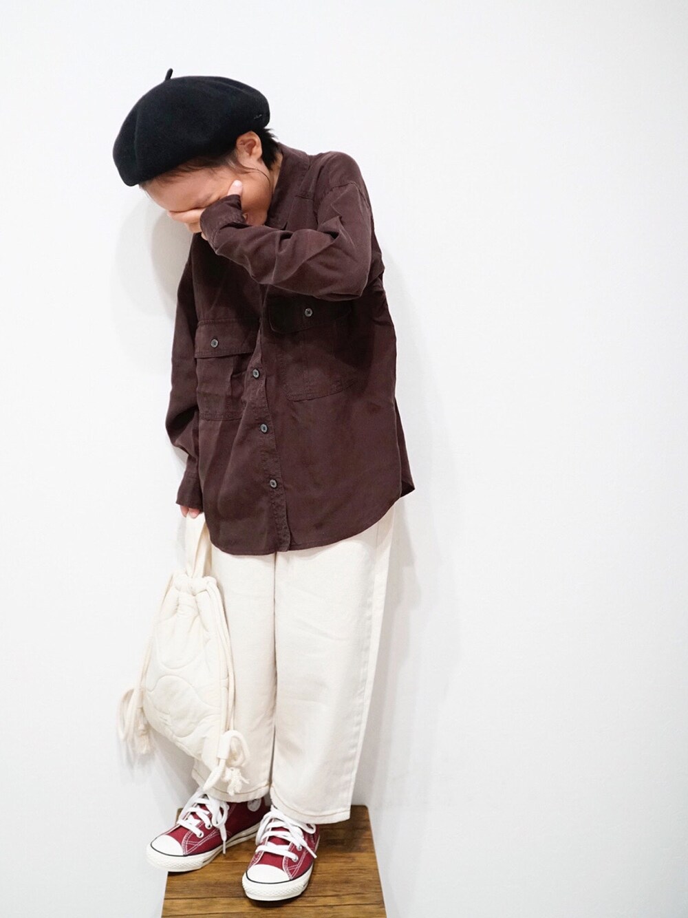 しなつのハンチング/ベレー帽「ロゴ入りベレー帽」を使ったコーディネート