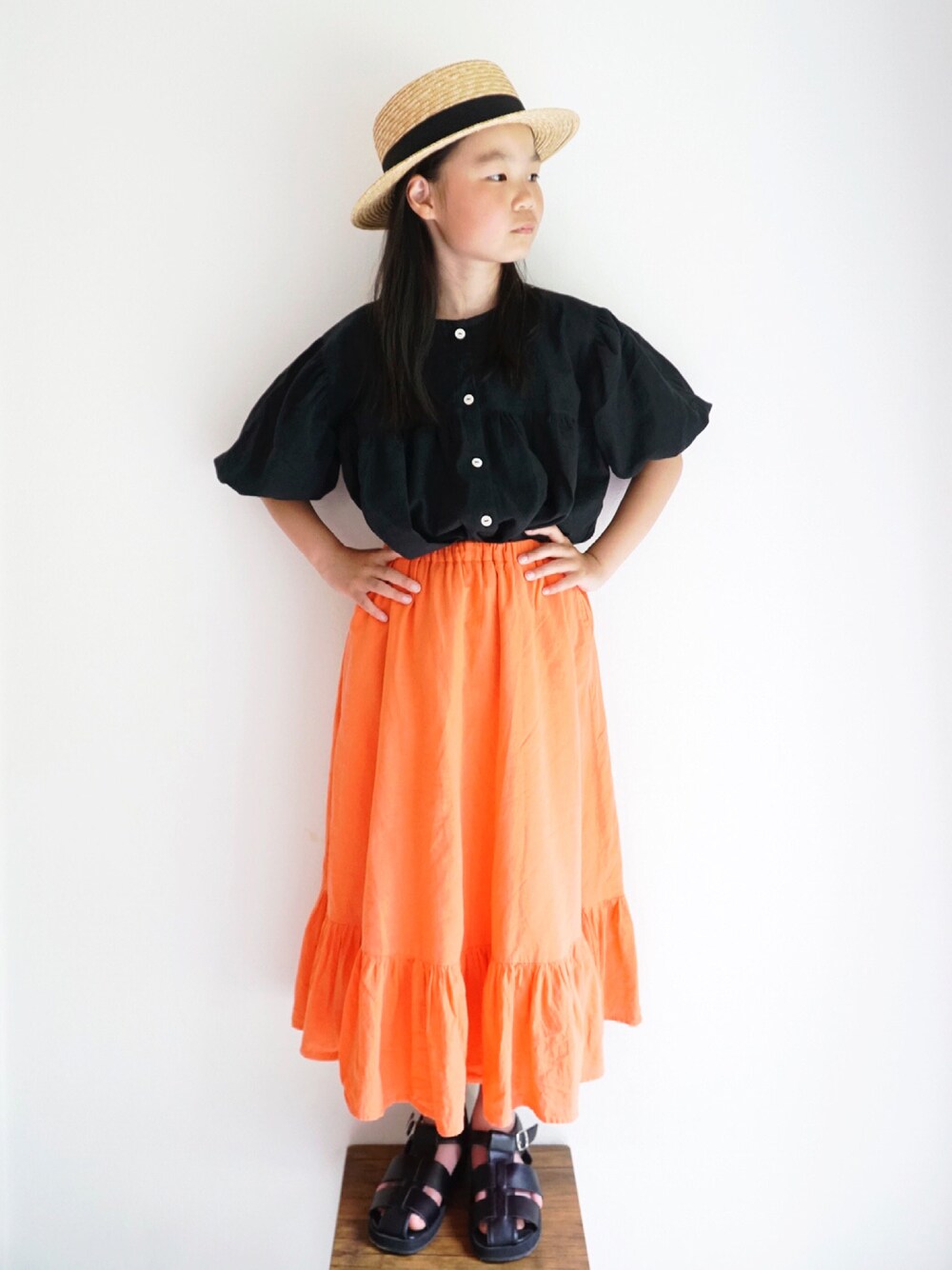 パキッとした オレンジを取り入れて お出かけは気分を上げたい⤴︎🌈 2wayブラウスは y__nさまのハンドメイド お袖のふんわり感と 白いボタンも可愛い💖 🧒 137㎝ / 26㎏ 見て頂きありがとうございます🙇♀️🙇♀️