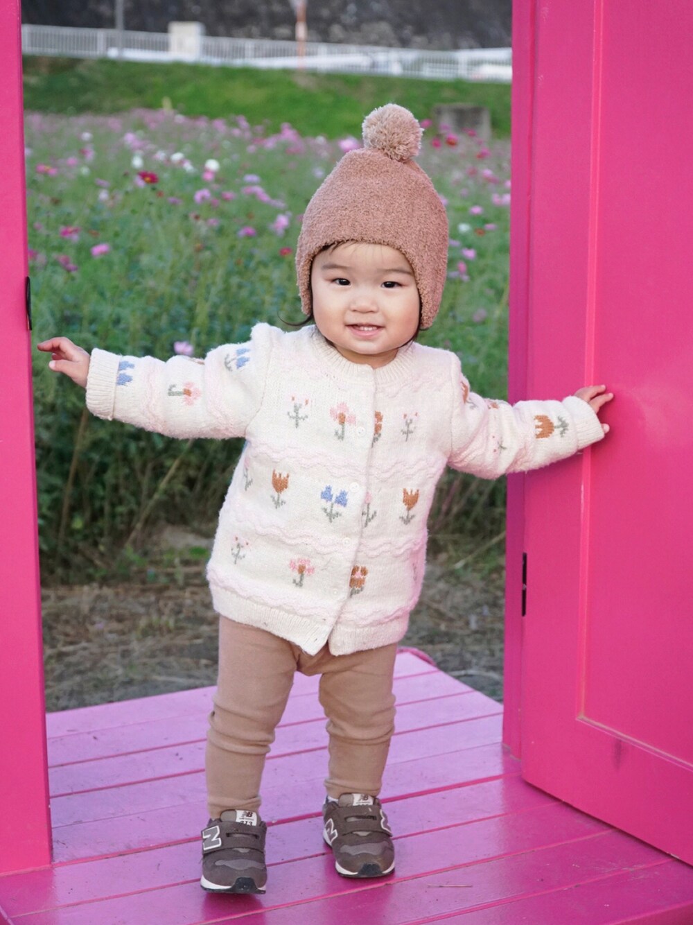 急に寒くなってきたので カーディガンがあると便利🙆♀️ 赤ちゃんは帽子すぐ取るので 西松屋でプチプラなのありがたや🙌 このお色味かわいい🐻🤍 👶1y3m
