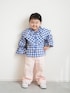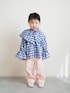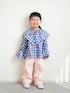 Blue × Pink 大きな襟と袖のフリルが 可愛いギンガムチェックブラウス ピンクのカラーデニム合わせで 春コーデ🌸 🧒95㎝/14㎏