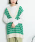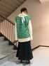 柄のニットベストが可愛いです✨ 腰回りまであるのでBIGシルエット好きにはたまらない丈感です❗️ マーメイドスカートと合わせるとBIGシルエットでもメリハリができてオシャレに着れますよ☺️