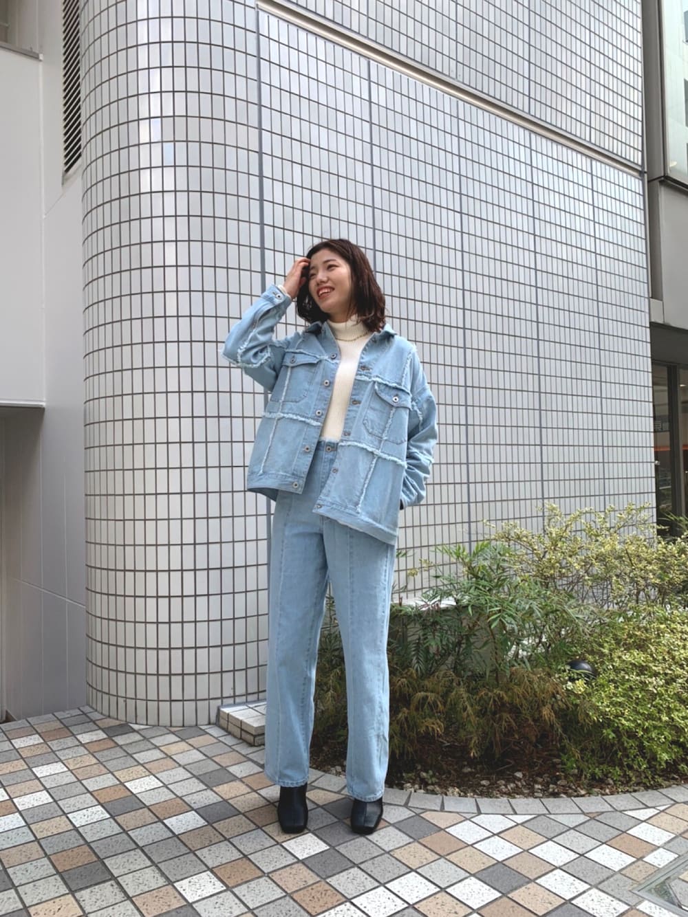 淡いカラーのデニムのセットアップ! シンプルなデザインのアイテムを合わせると、デニムのセットアップが映えるコーデになりオススメです☺️ 足元は、キレイめなスクエアトゥブーツを合わせてカジュアルになり過ぎないようにしてます✨ キレイめなセットアップもいいけど、デニムのセットアップでオシャレ映えする春コーデもオススメです✨