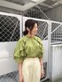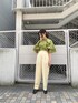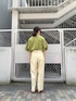 カラーコーデ✨ あえてカラー同士で合わせて春らしい色味にしてます! トップスはヒラヒラで可愛いシルエットだけどくすみグリーンがフェミニンにしすぎず着れるアイテムです☺️ ボトムスは下半身のラインを拾わずウエストのダブルタックで立体感を出し、センタープレスがゆったりしたシルエットもスッキリ着ることができます!