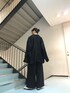 セットアップ風コーデ✨ 裾の広がりが綺麗なワイドパンツにコンパクトなトップスを合わせるとシルエットが綺麗に見せれてオススメです! 黒のワイドパンツをかっこよく見せるために黒のジャケットを合わせてモードっぽく着こなすと他と差を出すことができます☺️ 今年流行りのグルカサンダルを白にして足元は明るさを出してます✨