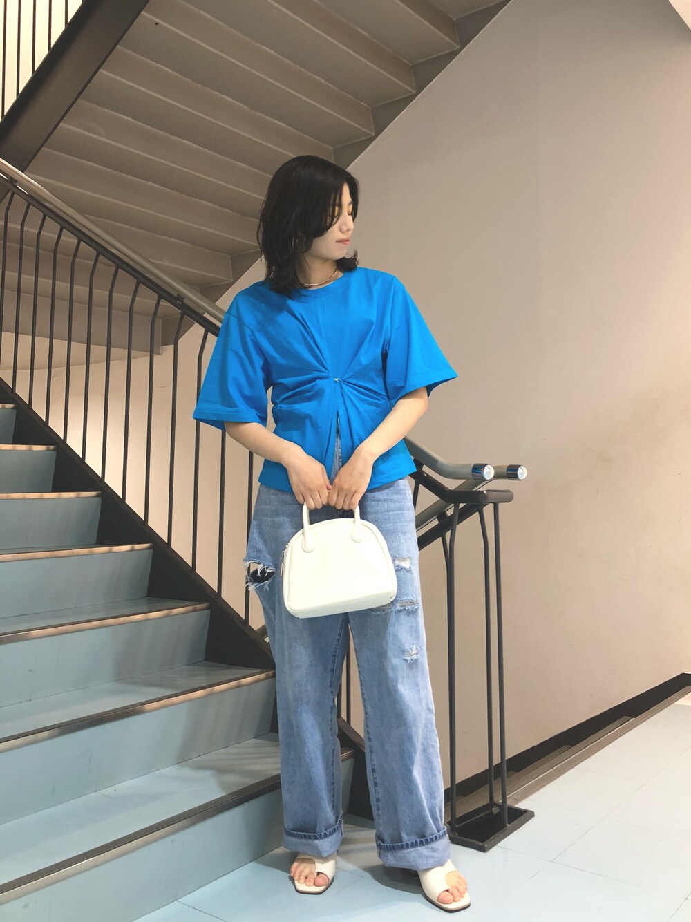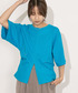 変形するTシャツ! フロントスリットが入ってるTシャツで、前にフォックが付いていてそれを繋げるとカシュクールぽくなるのでカジュアル過ぎず着こなせます✨