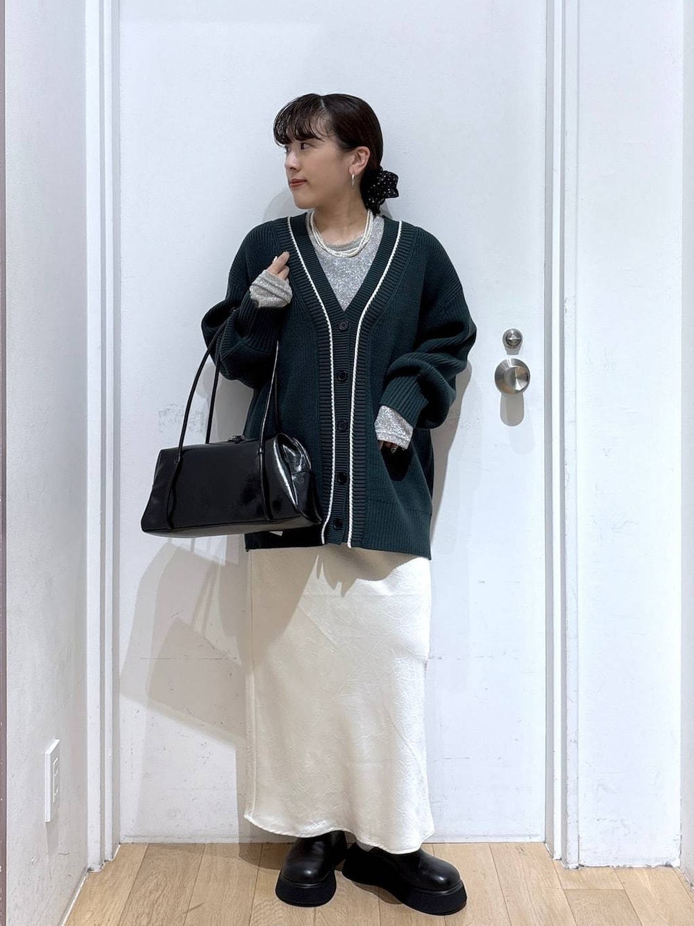 配色デザインがポイントのカーディガンです✨ショート丈とロング丈があり、カラー展開も豊富なのでお好みのデザインをお選び頂けます☺️Vネックなので顔周りもすっきり見えます✨ 艶感のある素材にシワ加工が入ったキレイめスカートです!オールゴム仕様でとても履きやすく、動きやすいです✨オールシーズン履けます🙆🏻♀️