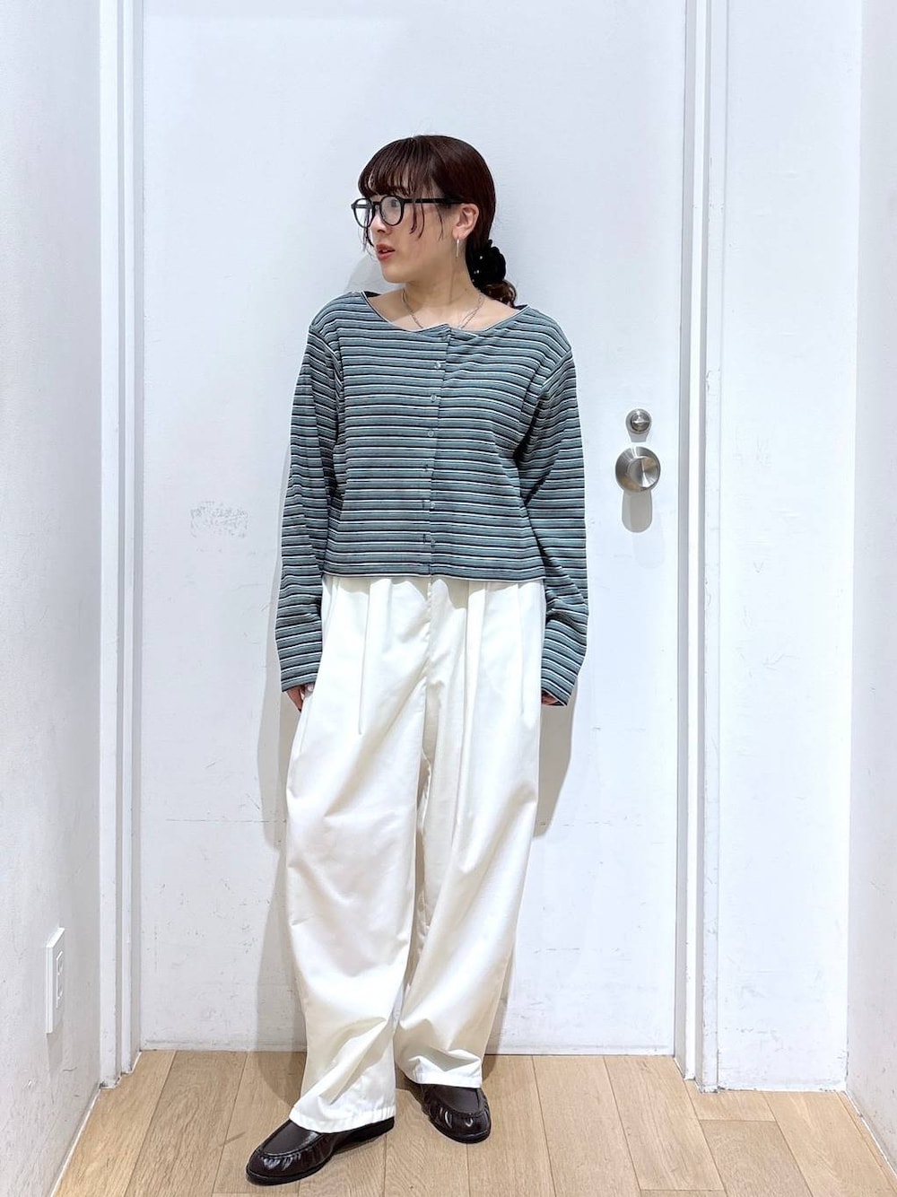【トップス】 襟元がすっきりと開いたボーダーのカーディガンは柔らかい生地感でとても着やすく、ちょっと長めの袖なのでスタイルよく見せてくれます✨肩紐が付いてるのでビスチェ風で着ることもできる万能カーディガンです! 【ボトムス】 ウエストがオールゴム仕様のコクーンパンツはキレイ目見えする素材でカラーによって雰囲気も変わるのでお好みのデザインを選んで頂けます☺️履くだけでトレンド感の出るシルエットでゆったりサイズなので楽に日常使いもしやすいです🙆🏻♀️