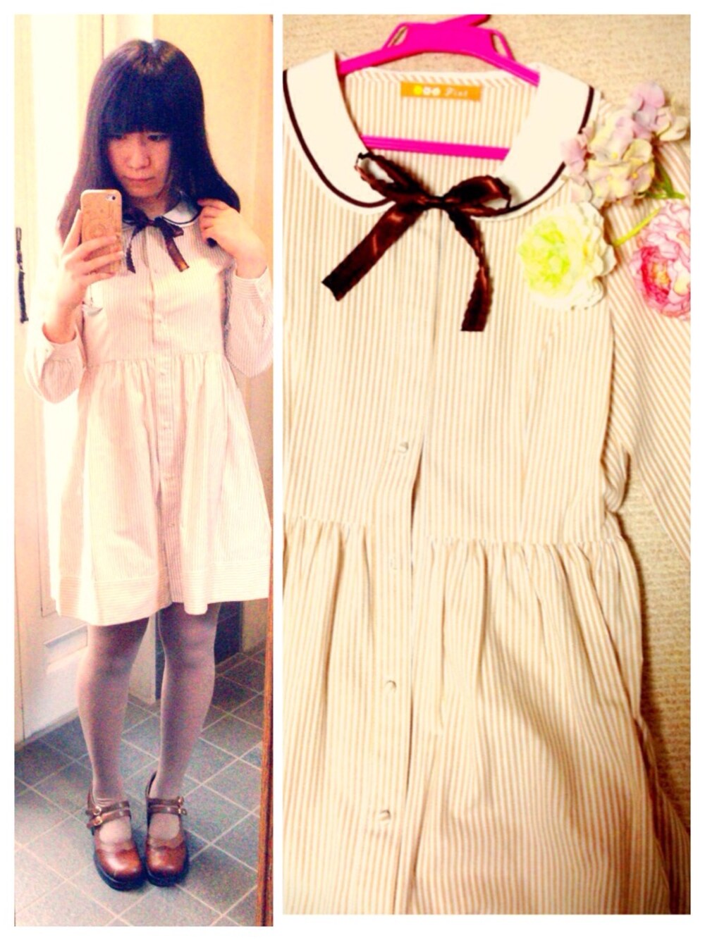 ぱちのワンピース「fi.n.t ストライプシャツワンピ」を使ったコーディネート