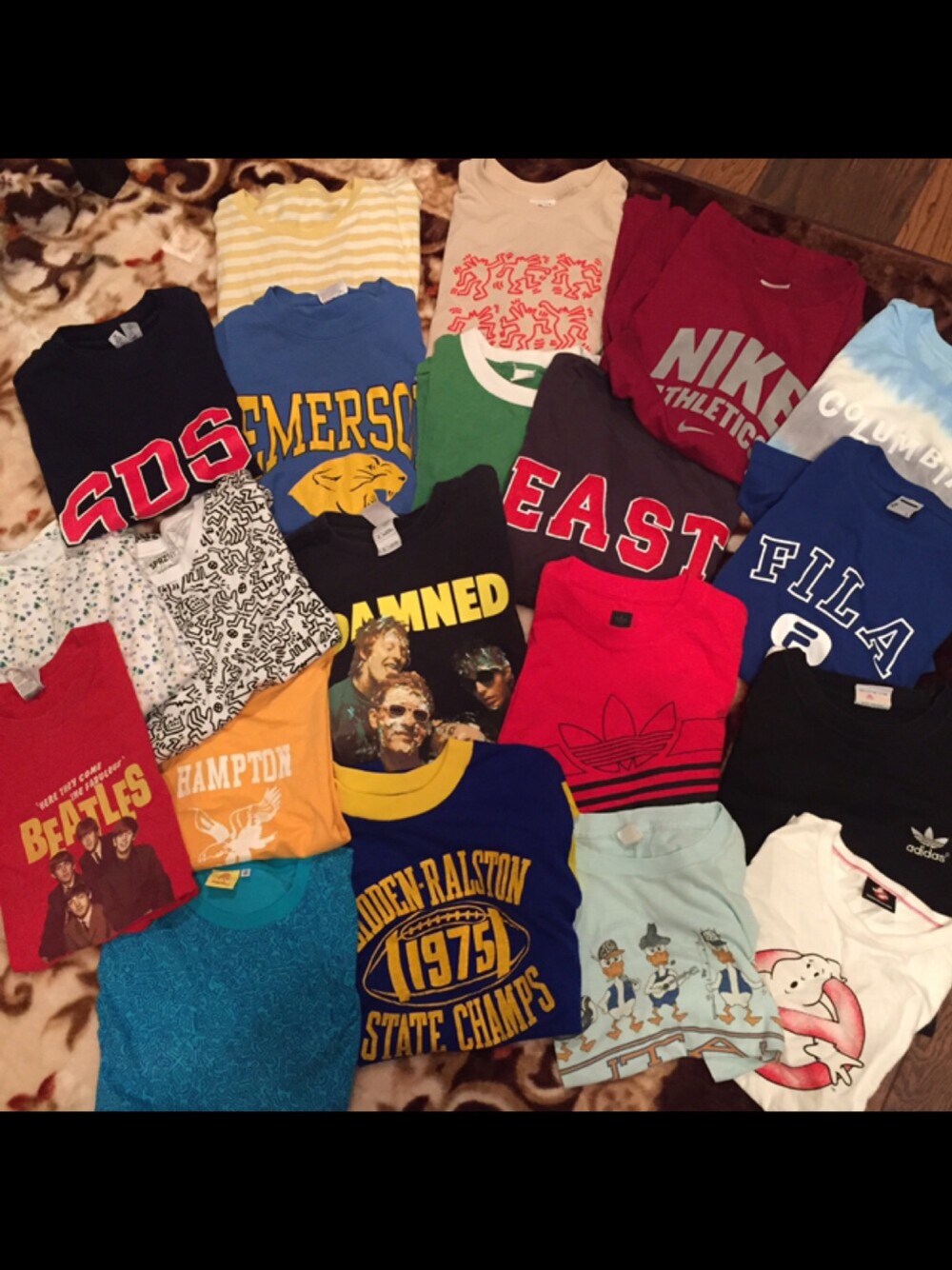 こんにちは〜〜🙋🙋🙋 時々開催するアイテム掲載企画。笑 今回はTシャツですね〜 ほとんどが古着でございます。 写ってないやつは小窓に 載せました~~ これらは持ってる柄物 デザインものTシャツのうち 一軍メンバーですね。笑 次シンプルなやつとか 他の色々のせます😻💫 さて、 左上から一列ずつ… ✩古着のパステルイエローの ボーダーTシャツで着心地◎😊👏 ✩その隣はキースへリングの ベージュに赤デザインです! ✩その隣はNIKE。 こちらは本当はDRYFITの トレーニングウェアっぽいけど 私服にしちゃってますね。笑 ✩その隣はコロンビア。 染めたような感じのTシャツで フェスの時よく着替えてました。笑 2段目! ✩チャンピオンのTシャツで シンプルだしネイビー×赤 っていうのが最高です。笑 ✩古着のヘインズですね これまた色の組み合わせと 虎のデザイン可愛いし ヘインズだから涼しい。笑 5.6年着てます。 ✩古着で緑のシンプルなVネック ですが襟と袖が白ライン。 だからリメイクように買いました。 ✩お隣はも古着 EASTの部分は変わった生地で これまた好きな配色!! ✩その隣も古着でFILAです。 一軍とか言って全然着てない。笑 3段目! ✩古着の小花柄Tシャツで 柔らかいタオル生地みたいだから 着心地最高ですよー! ✩UNIQLOのKeith HaringUT モノトーンコーデに最適で もう一枚買っとけばよかった… ✩その隣はダムドのバンTです。 もちろんライブ言ったわけではなく 古着屋さんで買いました!! ✩その隣も古着屋さんで買った adidasですねー 白パンツに良く合わせてました! ✩右も同じく古着adidas。 袖にラインが入ってる 結構メジャーなデザイン♡ 4段目~! ✩古着のビートルズのバンT! 1964年のアメリカツアーのです ✩隣も古着のTシャツで かなりお気に入りです😘💋 ✩隣も古着で色合いとデザインが 好きでスクールコーデとかで 結構活躍してくれてる! ✩こちらも古着で7.8年前に 買ったやつで元々薄いし 伸びるから着心地いい~ ✩となりはBEAMSで買った ゴーストバスターズです。 ん?最近着てないな。笑 ✩一番下がKeith Haringの真っ青な 総柄ですね~! ここまで読んでくださった方 ありがとうございます🙈❤️❤️ さて小窓いきます。 古着のNIKEは一カ月前 くらいに買ったやつかなぁ。 青のボーダーも同じく 古着で最近買ったやつ! 結構着てるかな☺️✨ ブルズのやつも最近。 前書いたけど色あせ具合が 最高なんですよね。笑 あとはBEAMS BOYの ベースボールTと これまたキースへリングのUT😂❤️ ではでは! いつも見てくださる方々 いいねやSAVEしてくださる方々 フォローしてくださった方 ありがとうございます🙈🙈