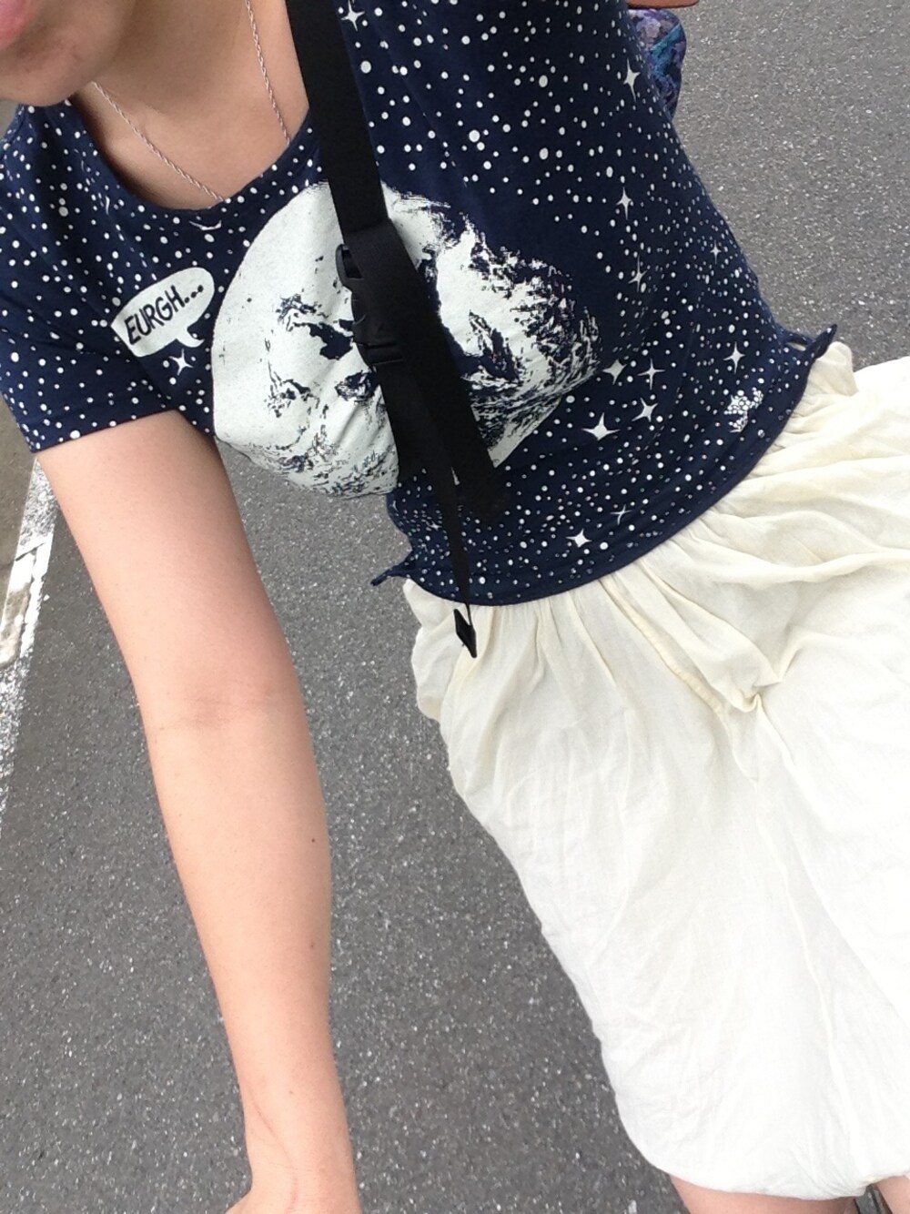晴れ ムシムシ すっぴんダッシュで朝一歯医者さん 自転車乗るとふわーってなる 通称ジブリスカート シャツ vivienne westwood ジブリスカート niko and...