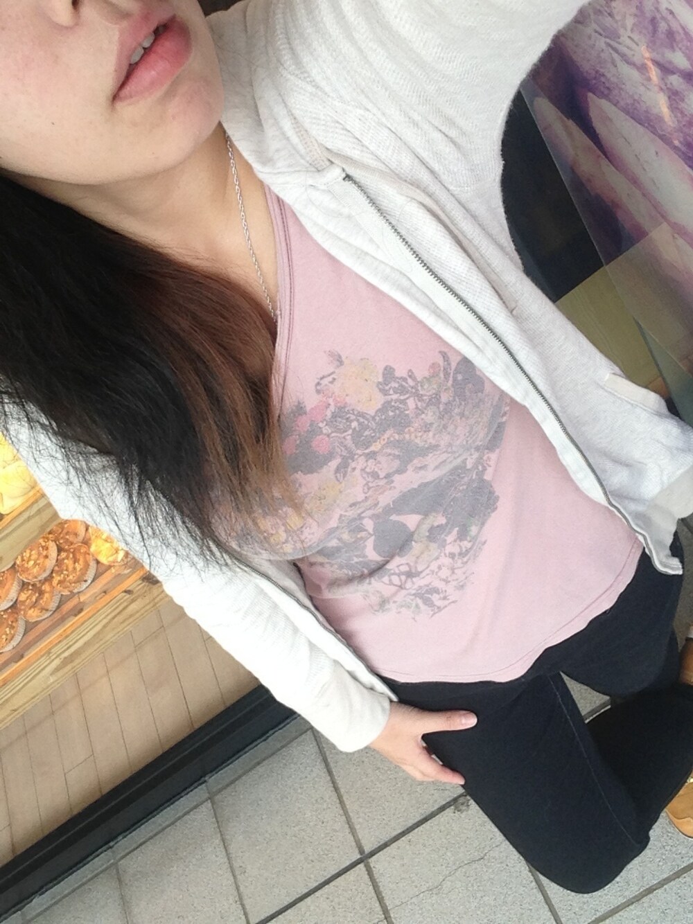 朝は晴れ 夜にまたどっかんゴロゴロあるみたい 初めてのお仕事 緊張と眠気で口が半開き パーカー GAP Tシャツ barak ジーンズ GAP キャップ 古着 スニーカー adidas