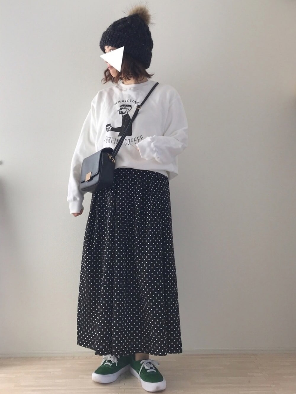 今日は暖かかった! モノトーンに差し色グリーンスニーカー