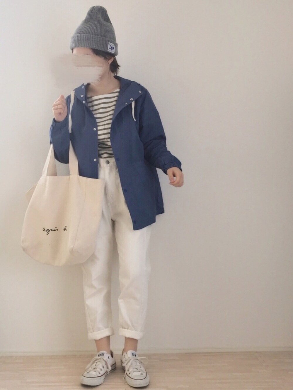 風が強すぎて、一度帰って来たときに着替え直したコーデがこれです💁♀️ どカジュアル!春はやっぱり白パン履きたくなります😊