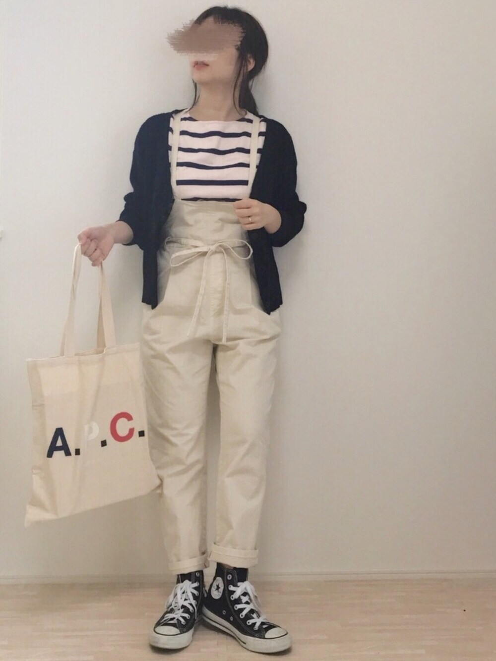 淡いピンクとネイビーのボーダー😊 サロペットは裾を折ってハイカットをしっかり見せました🌸
