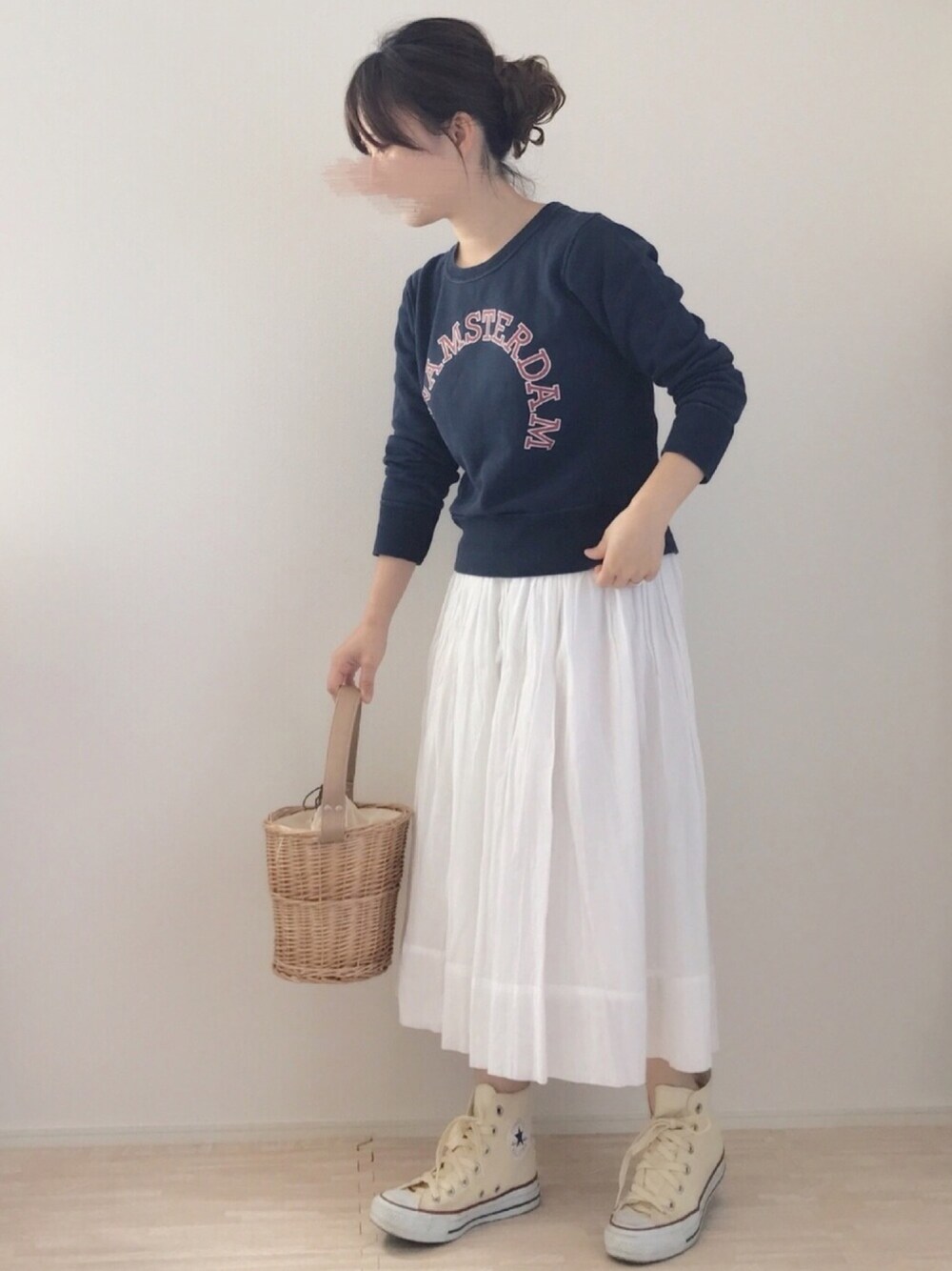 スウェットにロングスカート🌸 ゆるっとシルエットのスウェットもいいけど、こうゆうタイトめなのもやっぱりいいなぁ✨合わせやすい😊