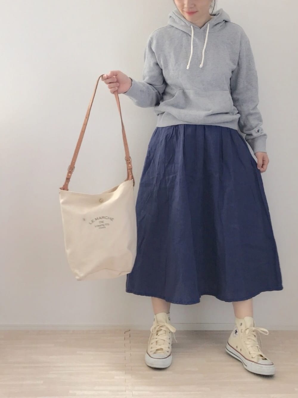 パーカーにリネンスカート🌸 ハイカットにはいつも2センチのインソール!キナリ履くのめんどくさいけど(いつぞやのコーデの時に書いた理由によりw)やっぱいかわいい💕 なんでこんなに足開いてるんだろう...笑