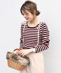 haのニット/セーター「Khaju:マルチボーダー2WAYプルオーバー」を使ったコーディネート