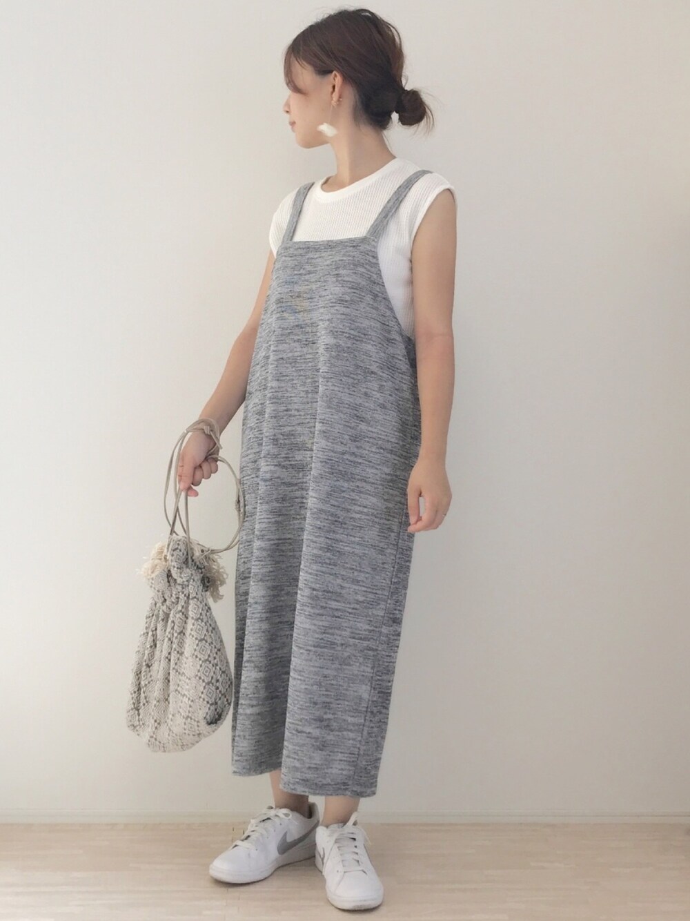大好きジャンスカ♡プチプラ😊 ホワイト×グレーの2色コーデ!