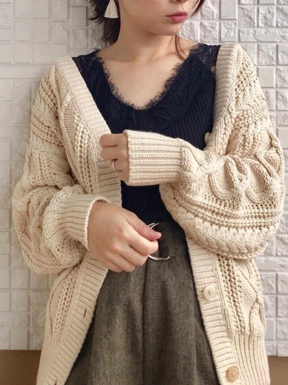 haのニット/セーター「【WEB限定アイテム】3GCoNyケーブル2WAY 784132」を使ったコーディネート