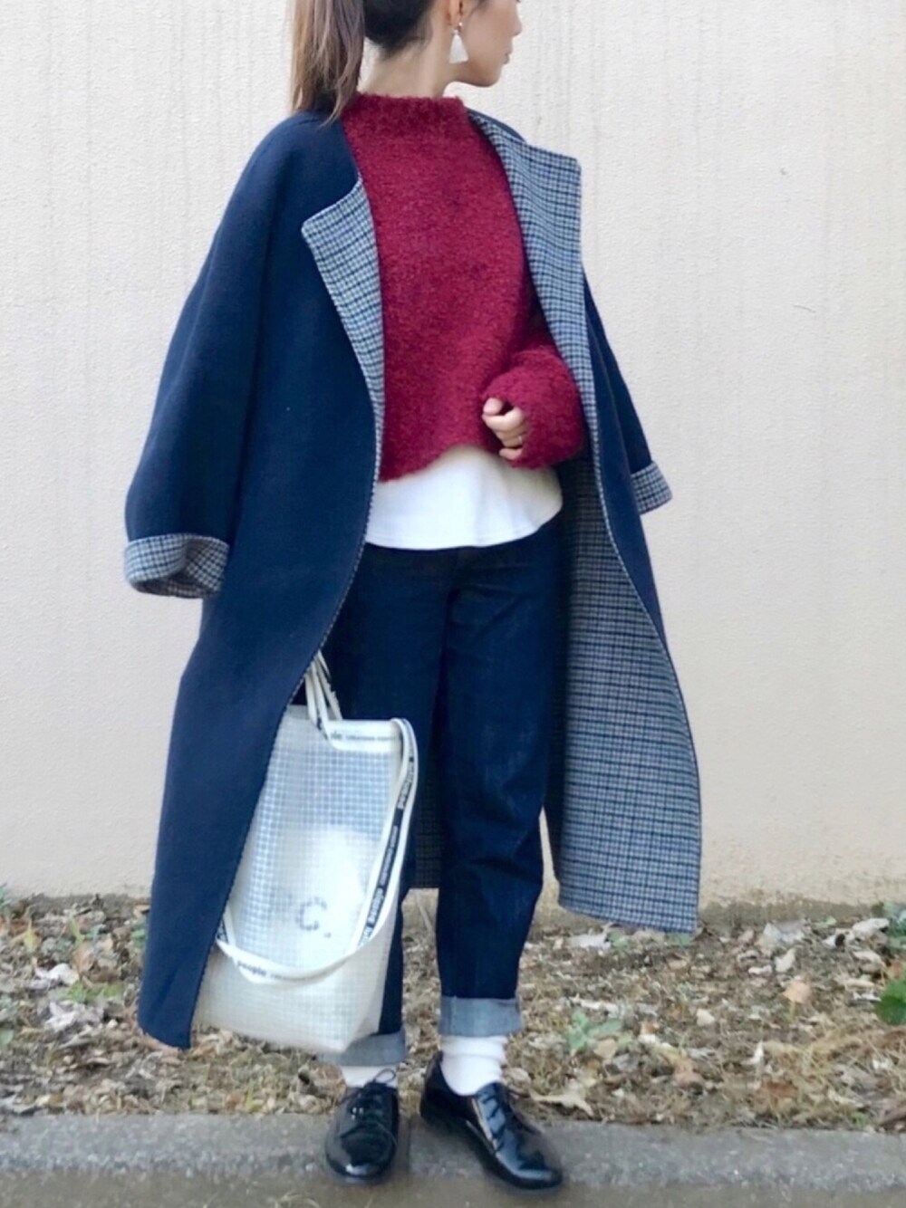 赤ニット🧶 よく着てるのに写真撮ってなかった~( ~³ω³ )~ 少し印象を変えたくて 久々にオックスフォード!