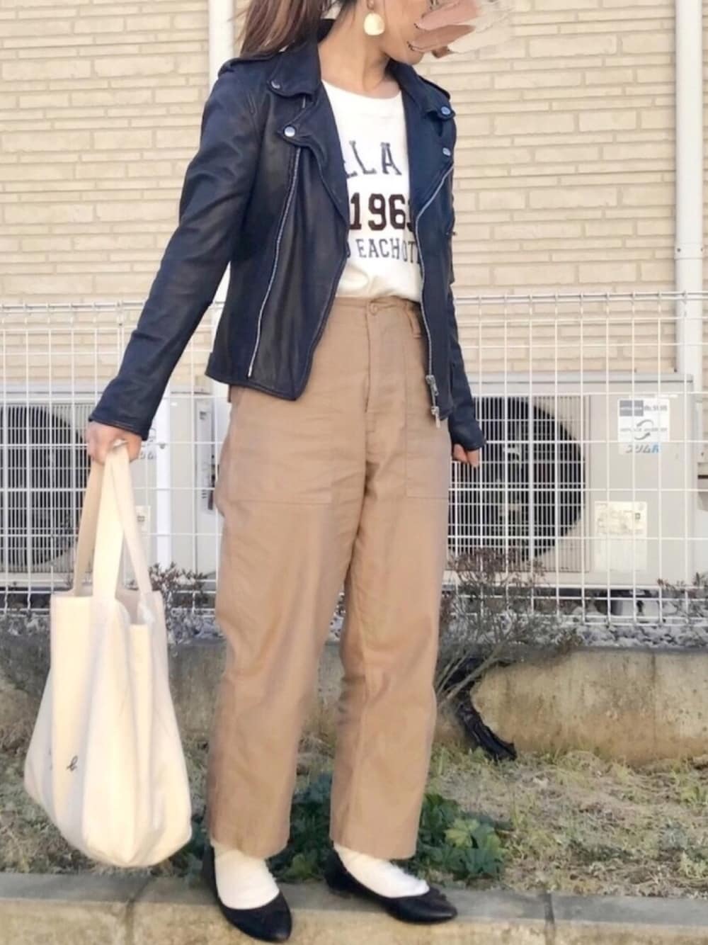 haのライダースジャケット「Khaju:ラムレザーライダース□」を使ったコーディネート