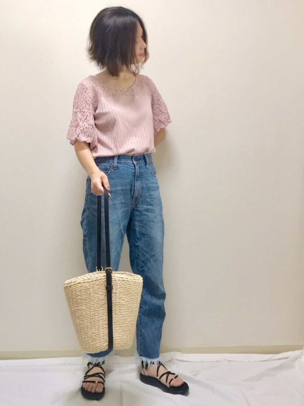 haのTシャツ/カットソー「半袖レース切替リブプルオーバー」を使ったコーディネート