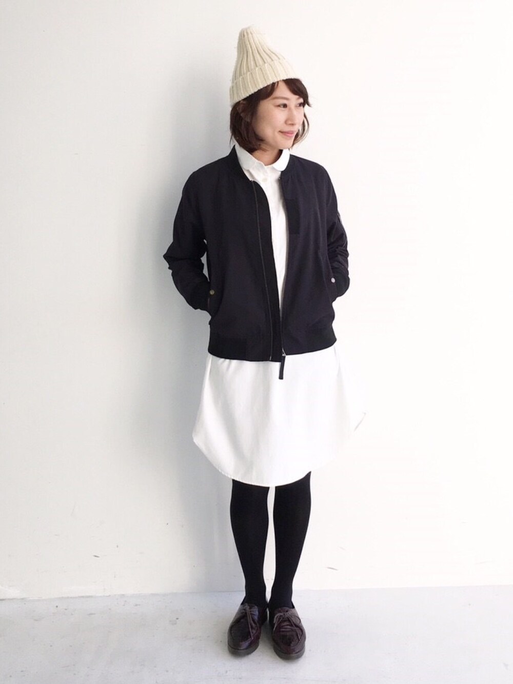 おはようございます~!!! まだまだ寒い日が続いておりますが、 春気分でご紹介です。 今haco!の新作で人気のMA1です! きれいめだから、着やすくてGOOD☆ 白いシャツワンピとの相性もグッド!!! 白いシャツワンピに白いニット帽もホワイトコーデでかわいいんです。 MA1を脱いだあとも、いい感じですよー! これから春・初夏まで使えるベンリなものたち☆ これからの季節がたのしみですね!!!!