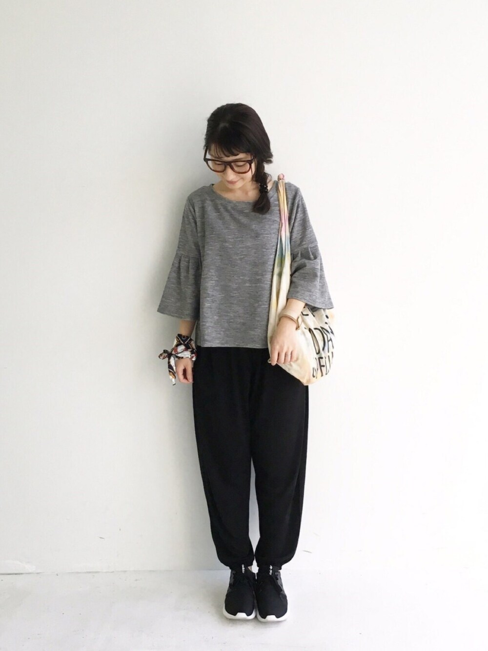 iyuのTシャツ/カットソー「フラワースリーブのWフェイスカットソートップス」を使ったコーディネート