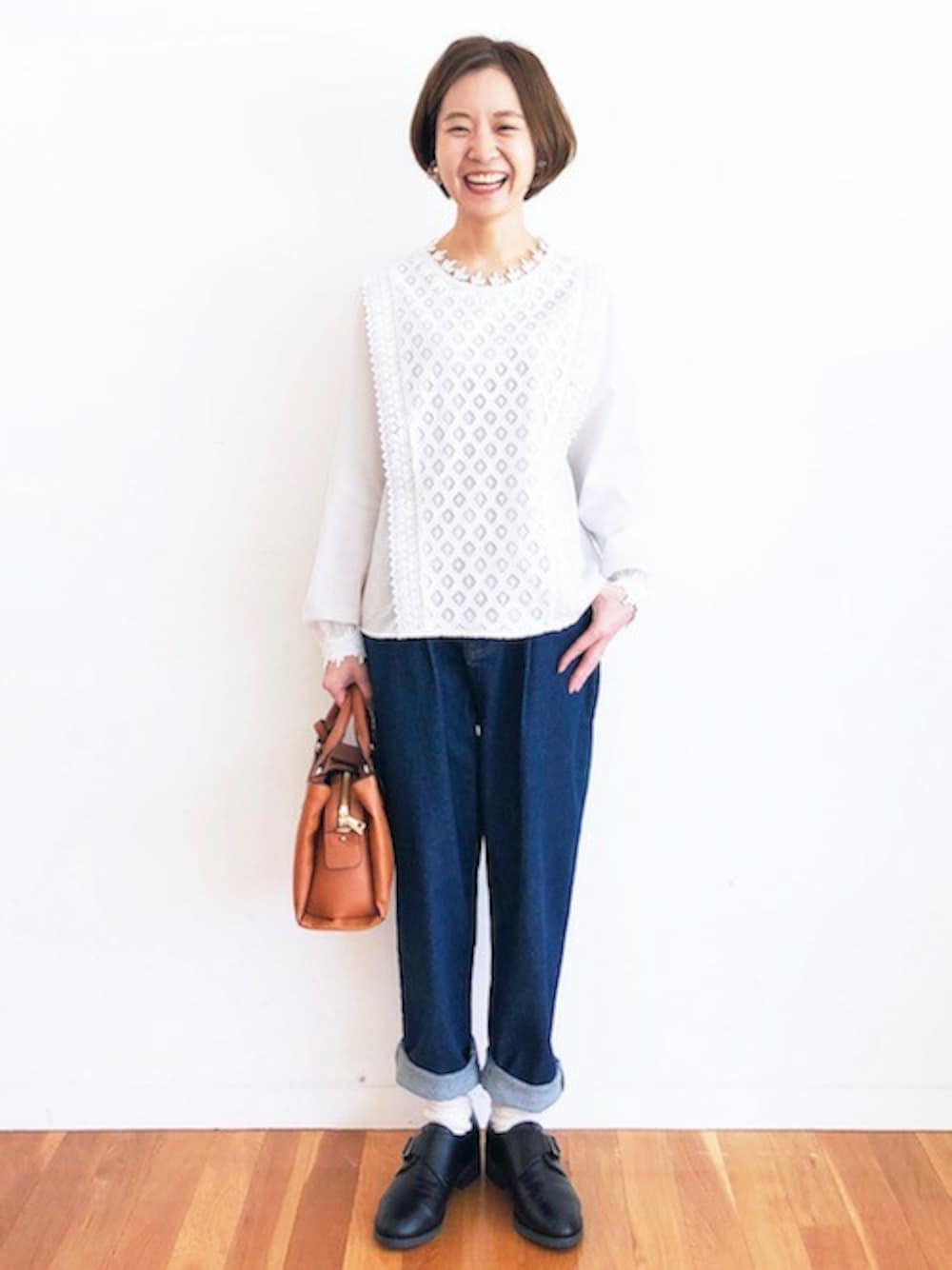 こりゃもう、絶対今日いい日だなっ!ってなるコーデ♡ 衿からも袖からもレースがこぼれちゃってて、 ついつい、首もとや手首に視線がいっちゃうブラウス。 細かいところまでかわいいがふんだんに詰まっていて、もう、ずるいとまで思っちまう子です。 前身頃はブラウスにレースが合わさったデザイン。 長袖だから、着れる季節はながめ。コートやカーデから見えるところが、全部かわいくなっているんです。 デニムと合わせても、長すぎず、短すぎずの丈感で インもアウトも、バランスよく着られます☆ こちらのデニムも密かにおすすめ。青色デニムが映える春にばっちりなのです。何がいいって、シルエット。おしゃれ見せするほんのりゆとりあるデザインですっ スタッフ:maru 身長:151cm 着用サイズ:M