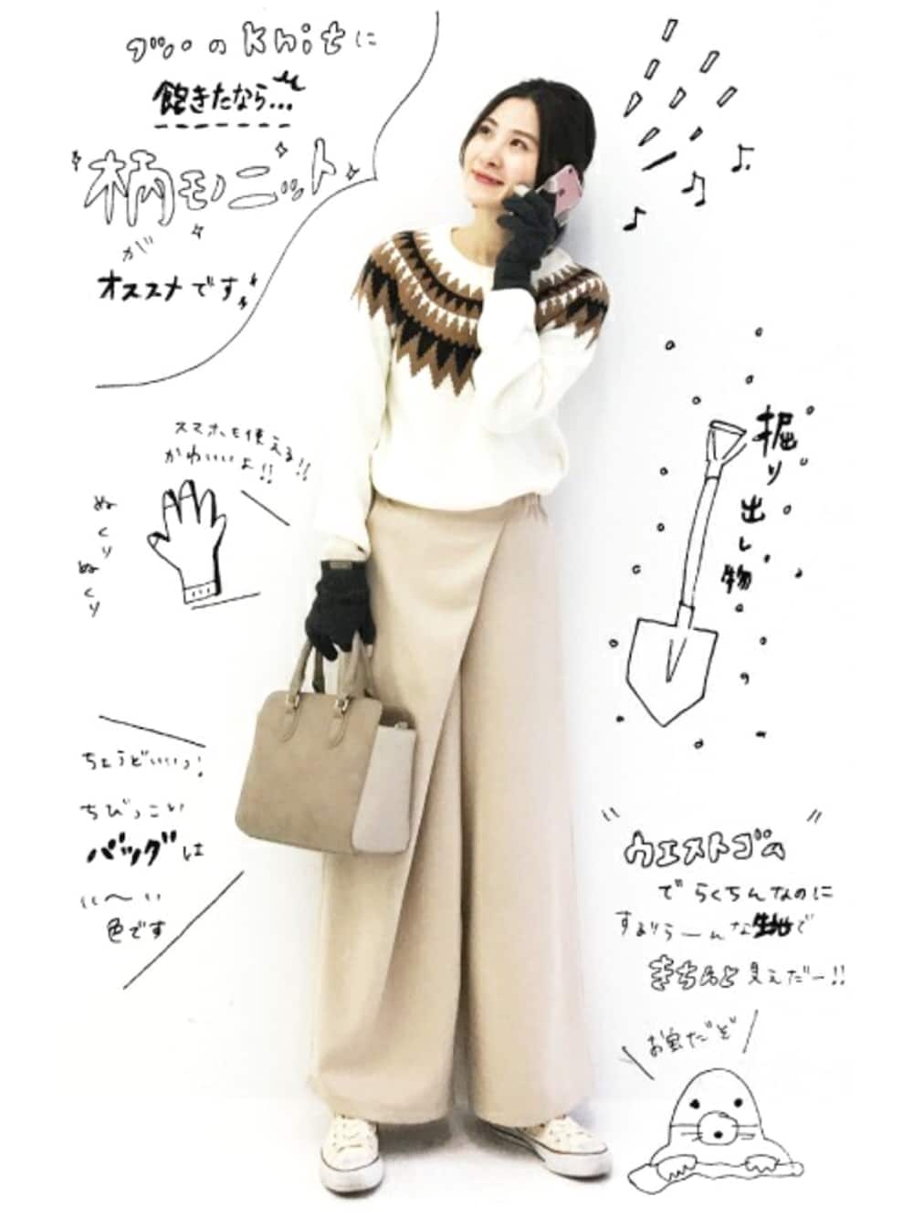 フツーのニットに飽きたなら!ハッとする柄ニットはいかがでしょうっ?ノルディック柄のニットって、久しぶりに手をとるとなんて新鮮なんでしょ!ってなります。 こちらのニットはほっこりなりすぎないように柄の大きさや配置、色味を吟味して編みたてているので、大人の女性に着やすいデザインなんです。着膨れもしないのでいいですよ~っ! それに、こちらのウエストゴムのパンツはですね、さりら~ん、とろり~ん。という、素敵な素材のおかげでた、高く見える!!!!!セールでお得にゲットなんて、よもや誰も思わないでしょう~^^! ほよよんとした優しい夢うつつのような色味は、春になっても合わせやすい!次の季節に憧れながら、もう少し冬コーデを楽しみましょう~! ★★★★★★★★★★★ \ブログ やってます/ haco!WEBサイトで アラサー冒険家acoの 【Tender ロイン 素敵】 という記事を書いてます^^ プロフィールから 飛べますので よければどうぞ ★★★★★★★★★★★
