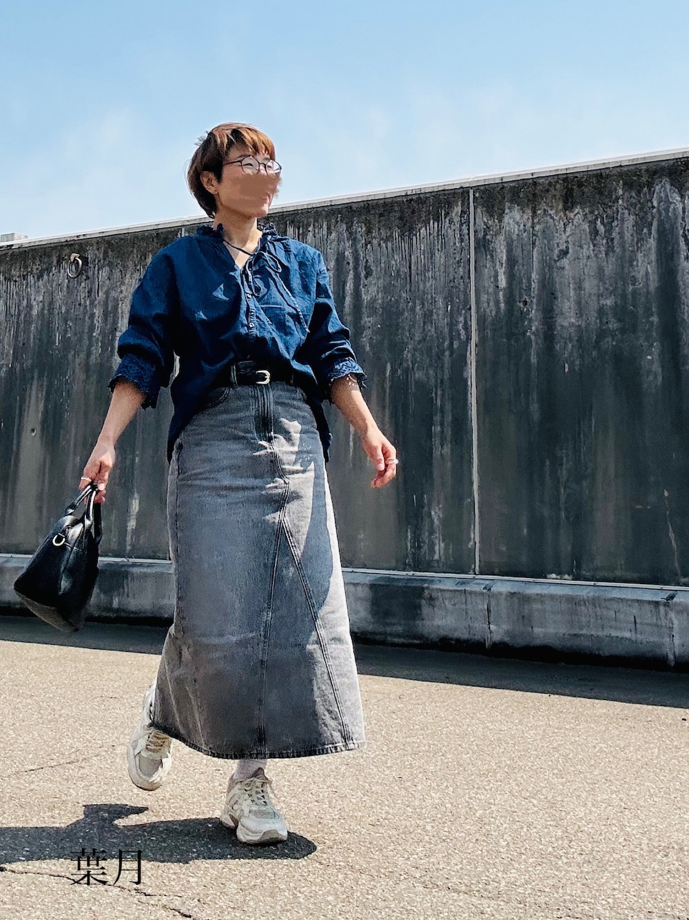 2025/04/29 閲覧ありがとうございます✨ いいね、お気に入り、フォロー、とっても嬉しいです😆❤️❤️ wearを開ける日が減っているので、まとめて❤️👍しております🙇♀️ コメントもなかなかできないのですが、ちゃんと見て読んでいるので、呆れずお付き合いくださいね。 山菜の季節です😋 今年は雪が多かったので、長く楽しめそうですよ🤤 コーデ。 濃青のフリルシャツ。 ↑coen。 フリルとレースが可愛くて、1枚で着映えするシャツは、これから出番が増えますね♫ 黒のベルト。 グレーのデニムパネルナロースカート。 ↑ユニクロ。 白のラインソックス。 ↑ファミマ。 青と緑のラインがアクセントになって可愛い💚💙 アイボリーのボリュームソールスニーカー。 黒のミニボストンバッグ。 ↑ベルトも黒と金なので、合わせてます。 指輪達も金で💍