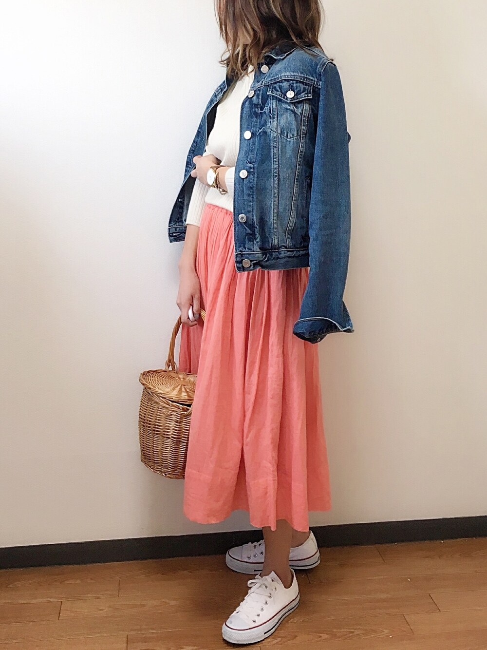 春コーデ☀︎ 春だし明るい色が気になる☺️ といってもスカートは去年の💦 今年もたくさんはきます❣️ Instagram→s.eee.m