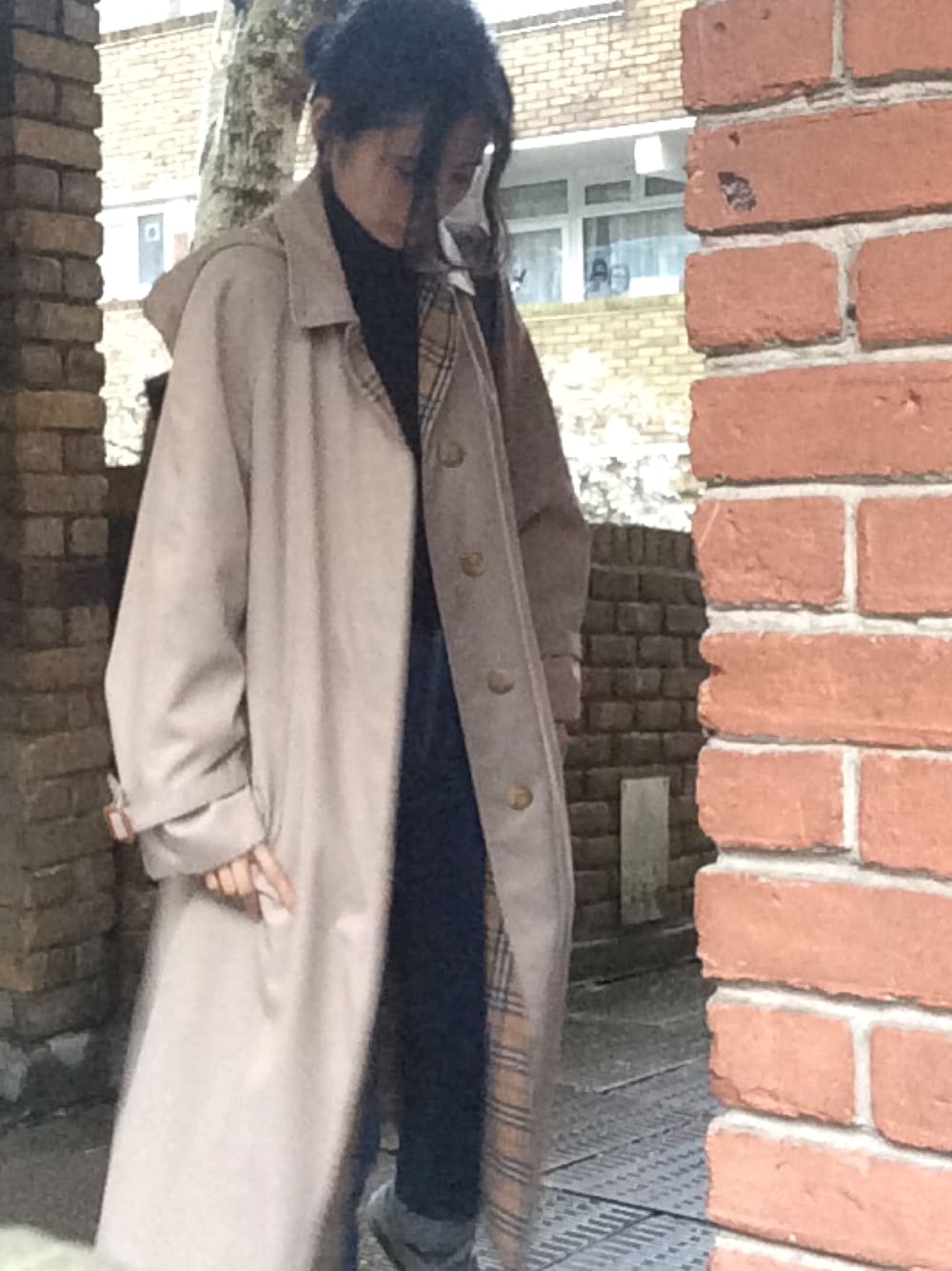 ベージュ系のトレンチコートを着用したレディースの春コーディネートの1枚目の写真