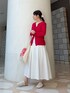 赤色をアクセントにコーデを組んでみました! 赤色以外は白色でまとめて春の爽やかさを感じられるようにしています🫧 トップスはシアーインナーとカーディガンの2枚セットになっているため、着回し力抜群です🌟 シアーインナーが白色なので、セットで着ると赤色が強い印象になりすぎません! スカートは歩きやすい丈感になっており、お散歩に最適です⁎⁺˳✧༚ 後ろに向かってタックの位置が下がるデザインが可愛いです🫶 サンダルを履くことで、日中暖かくても蒸れを気にせず過ごしていただけます! ご覧いただきありがとうございました♡*°