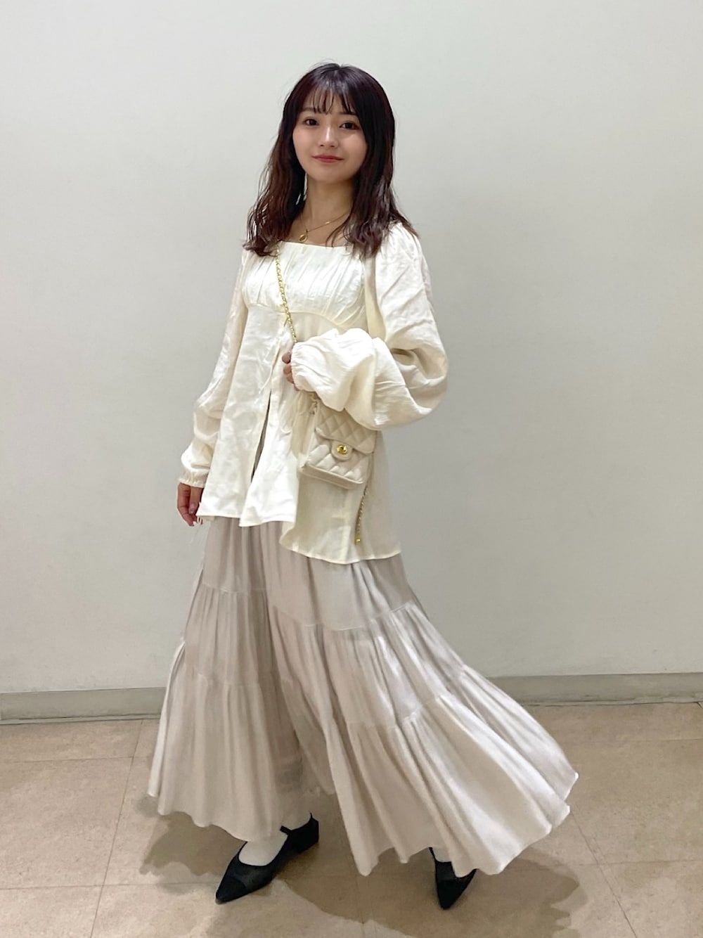 身長:148cm 骨格:ストレート パーソナルカラー:イエベ春 普段サイズ:XS.S 足のサイズ:22.5-23.0cm、甲薄め 【Instagram】📨♡@h_kana43 【WEAR】🏷♡@hakana43 ✼••┈┈••✼••┈┈••✼••┈┈••✼••┈┈••✼ ・ブラウス(ホワイト/FRサイズ) おしりが隠れるくらいの長さで、袖はドロスト出来るので袖の長さ調整して今の時期から春まで万能に着れます🧚🏻♀️🌟 ・スカート(ホワイト/Sサイズ) くるぶしにかかるくらいの長さで、光沢感のあるシャイニースカートなので上品に着れます😌🌟軽くて裏地はしっかり付いているので揺れ感が出てキレイに履けます☺️︎💕︎︎