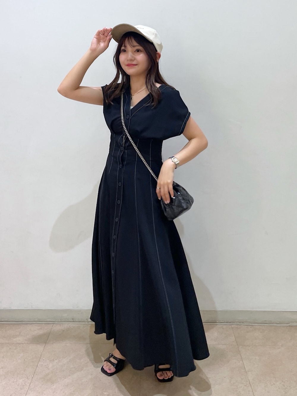 hakana(FREE'S MART新宿ルミネエスト)のワンピース「【3サイズ展開XS-M】ウエストシェイプ配色ステッチワンピース【低身長サイズ有】」を使ったコーディネート