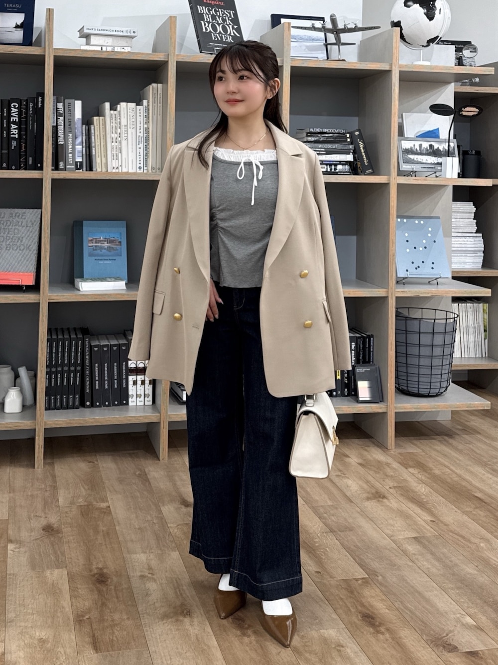 普段サイズ:XS.S 足のサイズ:22.5-23.0cm、甲薄め 【Instagram】📨♡@h_kana43 【WEAR】🏷♡@hakana43 ✼••┈┈••✼••┈┈••✼••┈┈••✼••┈┈••✼ ・カットソー(グレー/FRサイズ) ペプラム型なので着痩せできるカットソーで、もちっとした柔らかい素材で肌触りが良いです✨️ ・デニムパンツ(ワンウォッシュ/XSサイズ) 床にすらない長さで、柔らかくて軽いデニム地です🐥ワイドの中でもスッキリ着れて、スタイル良く見せてくれます👖 ・シューズ(ブラウン/Sサイズ) 高すぎないヒールで、先端が細めですがクッションが柔らかく効いているので歩きやすいデザインです👡✨️