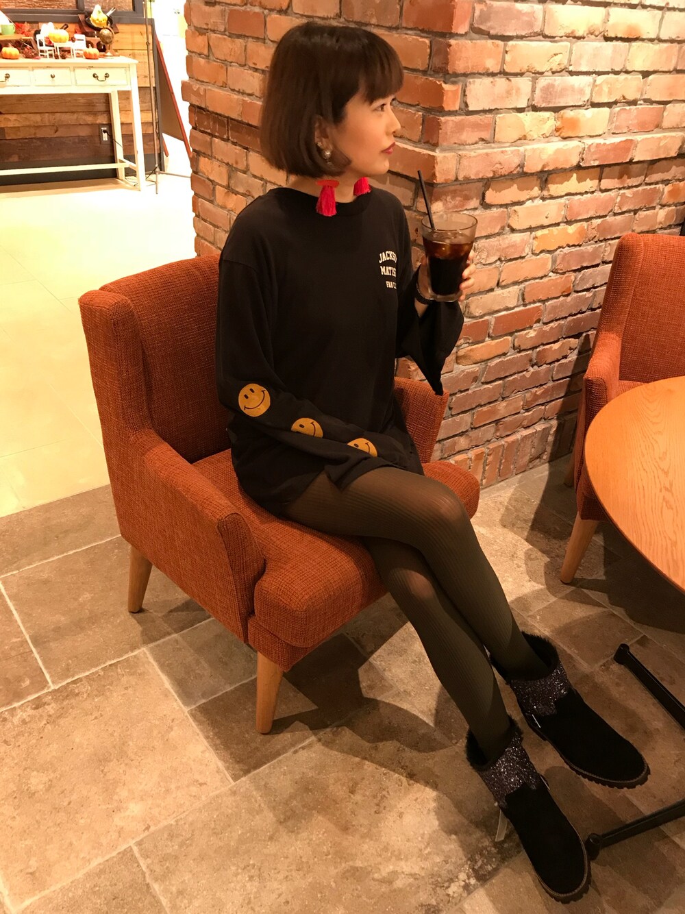 つづりcafeで休憩です☕️ 忙しい日でも歩きやすいブーツで一日ハッピーです❗️ラメがかわいいでしょ❓😆 靴が快適だと疲れも軽減されます😌✨