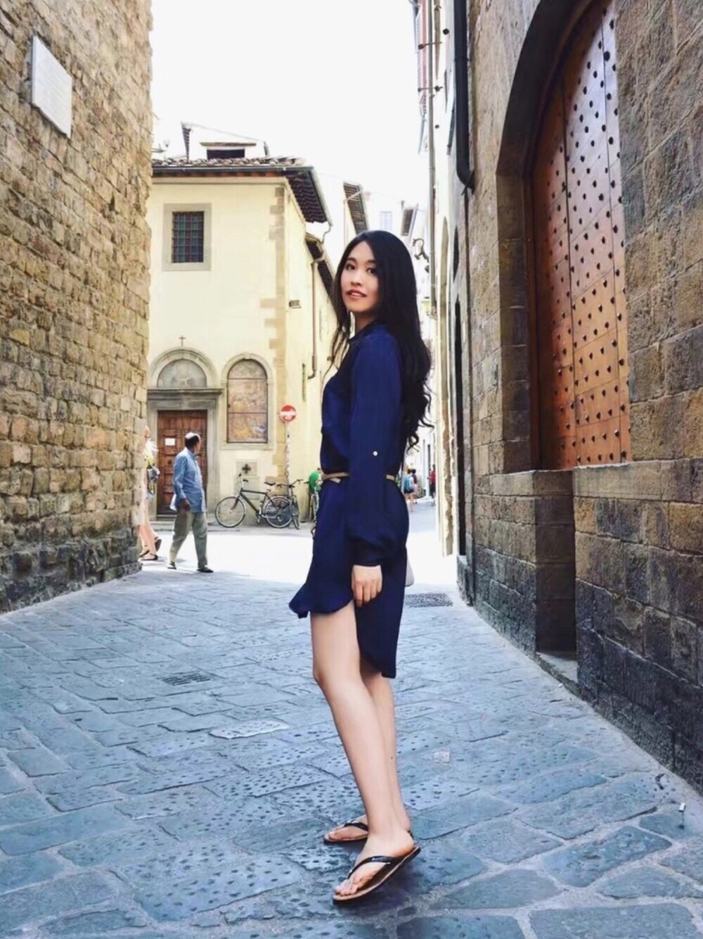 真丝连衣裙:ZARA(不含腰带) 人字拖:MICHAEL KORS @Florenz Italy