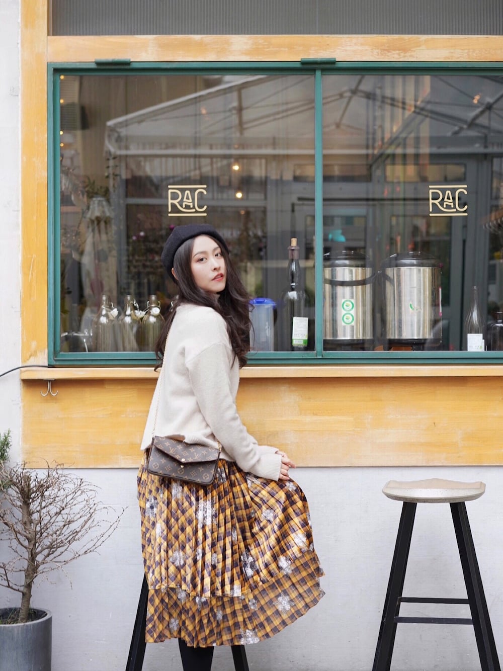 贝雷帽:优衣库 毛衣:淘宝:MASHY CHIC(十元诗苑的店,衣服越做越难看) 半裙:实体店购入牌子朕忘了 包:LV三合一