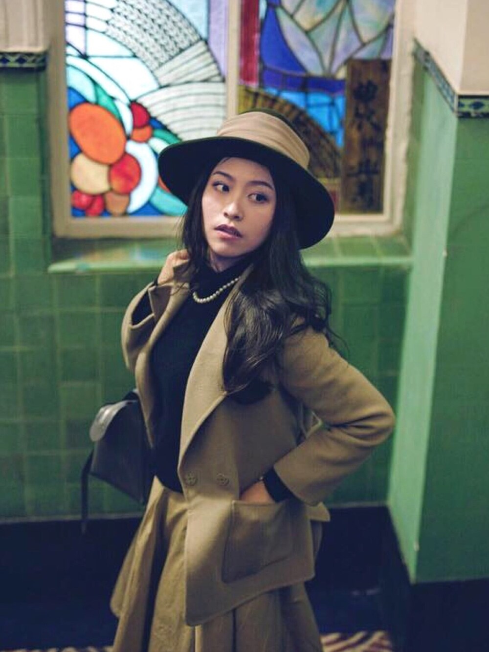 帽子:淘宝 MING独立制帽 珍珠项链:自己的手作 外套:妈妈的衣服 半裙:淘宝 Ching’s closet 包:CELINE
