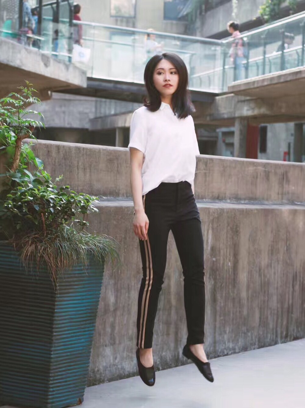 衬衫:优衣库 休闲西装裤:好像是Lily 平底鞋:Dune