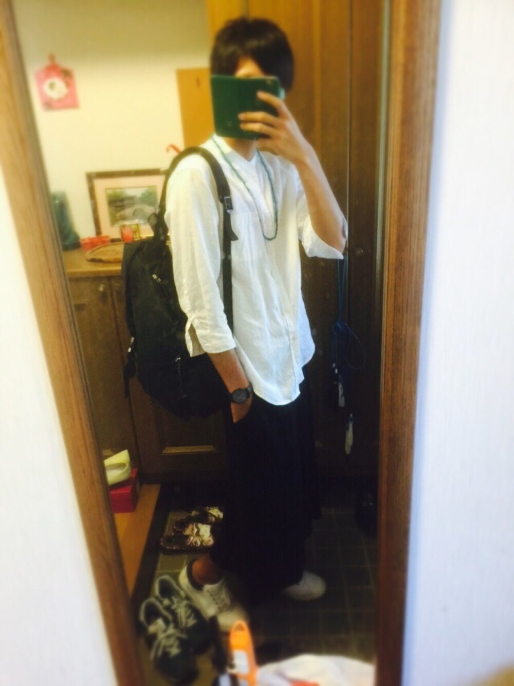 ほぼ白黒コーデです( ⊙‿⊙) 落ち着きのあるようにして、青のビーズネックレスでワンポイントいれてます( ⊙‿⊙) あってるかわかんない( ⊙‿⊙) たぶんすぐ消します( ⊙‿⊙)