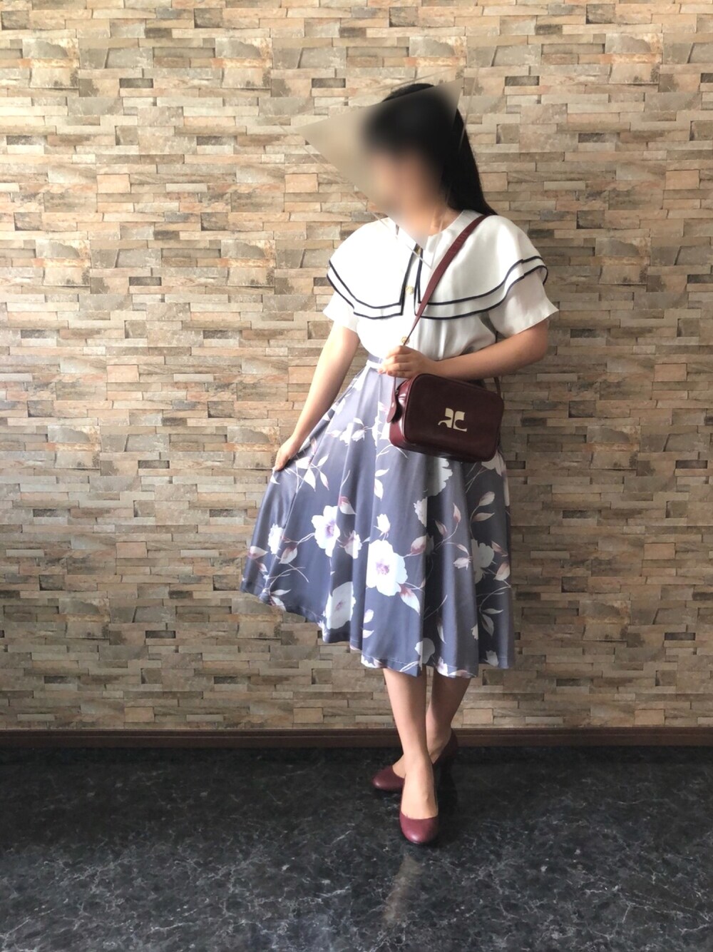 昨日のコーデのスカート違いです。 これも先日伊勢丹のアウトレットで見つけた品です。ポリエステルなのでシワも付きにくく、見た目もお洒落でお気に入りです。 鞄と靴はプレゼントで頂きました。 どちらも別の方からもらったものですが、セットかと思うほど色があってるんですよね(o・ω・))-ω-))うん