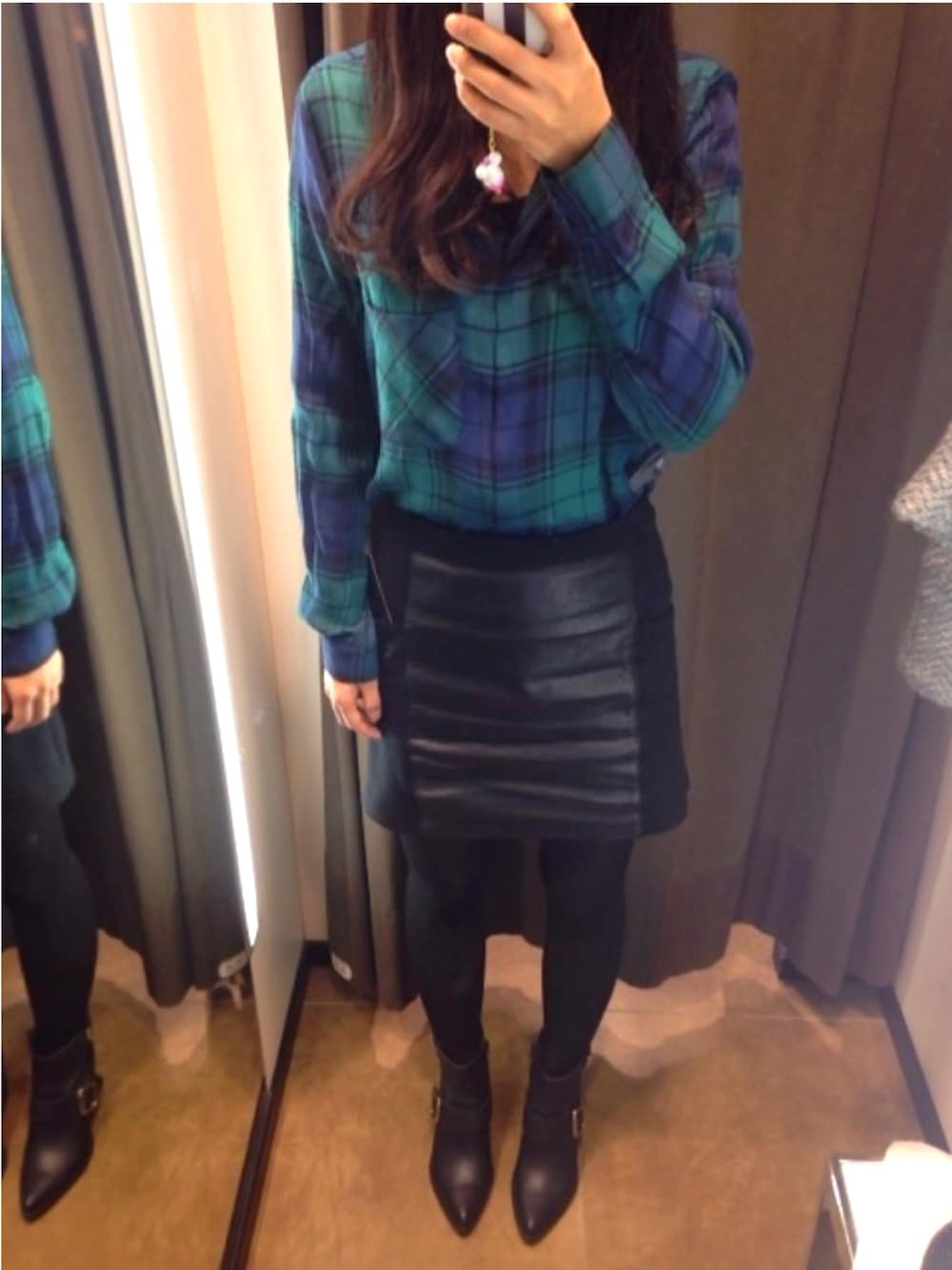 5年前…。 ZARAのチェックシャツ MOUSSYのスカート ジェフリーキャンベルのブーツ