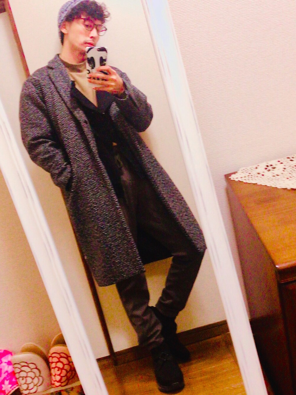冬コーデ。 このHAREのコート結構お気に入りデス。 最近細身のパンツ履いてないなあ……😅